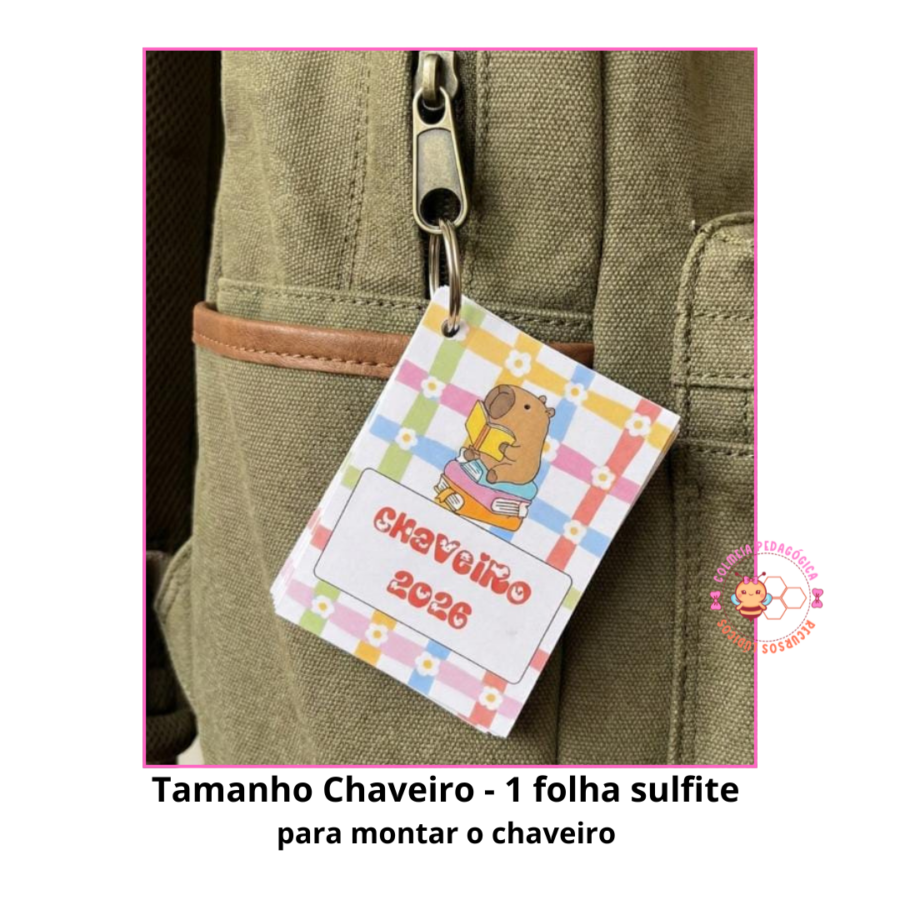 Além disso, ele acompanha um chaveiro 2026 super lindo, pra você usar na bolsa, no estojo ou nas chaves e levar a vibe capivara com você todos os dias! 🧡