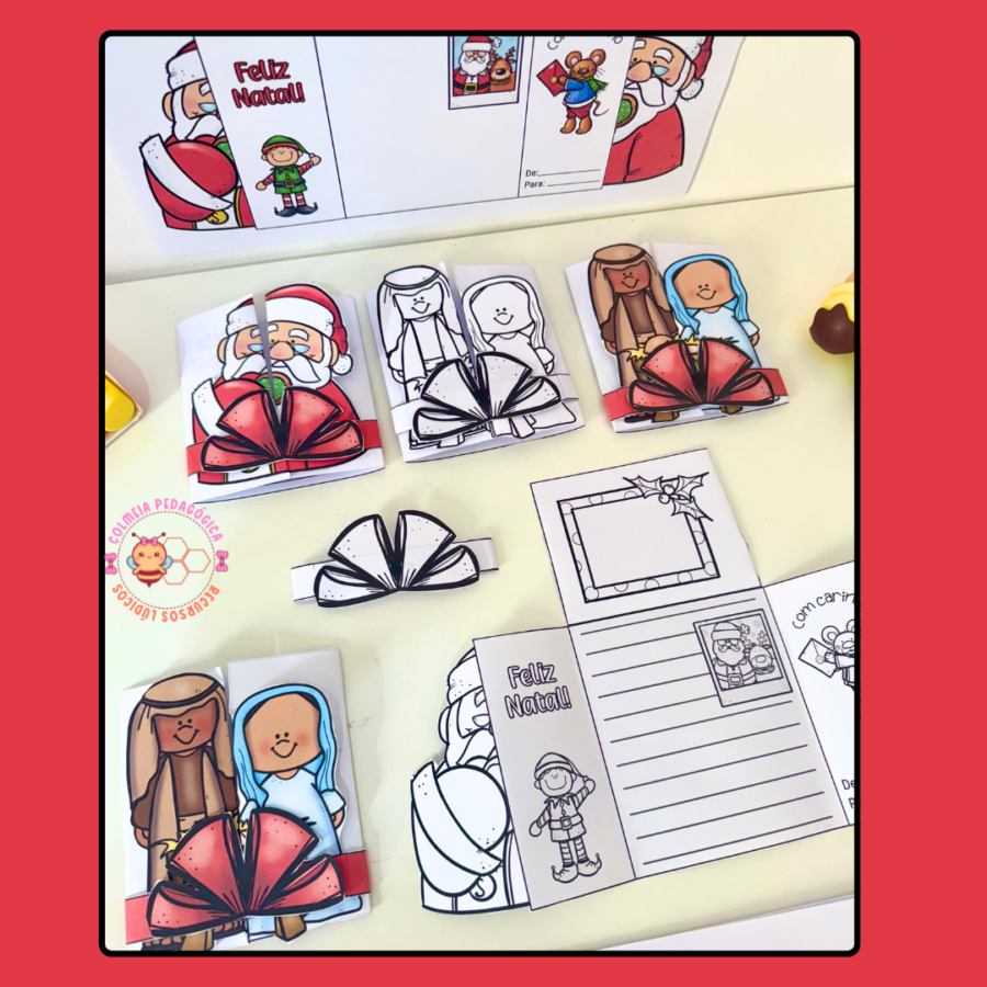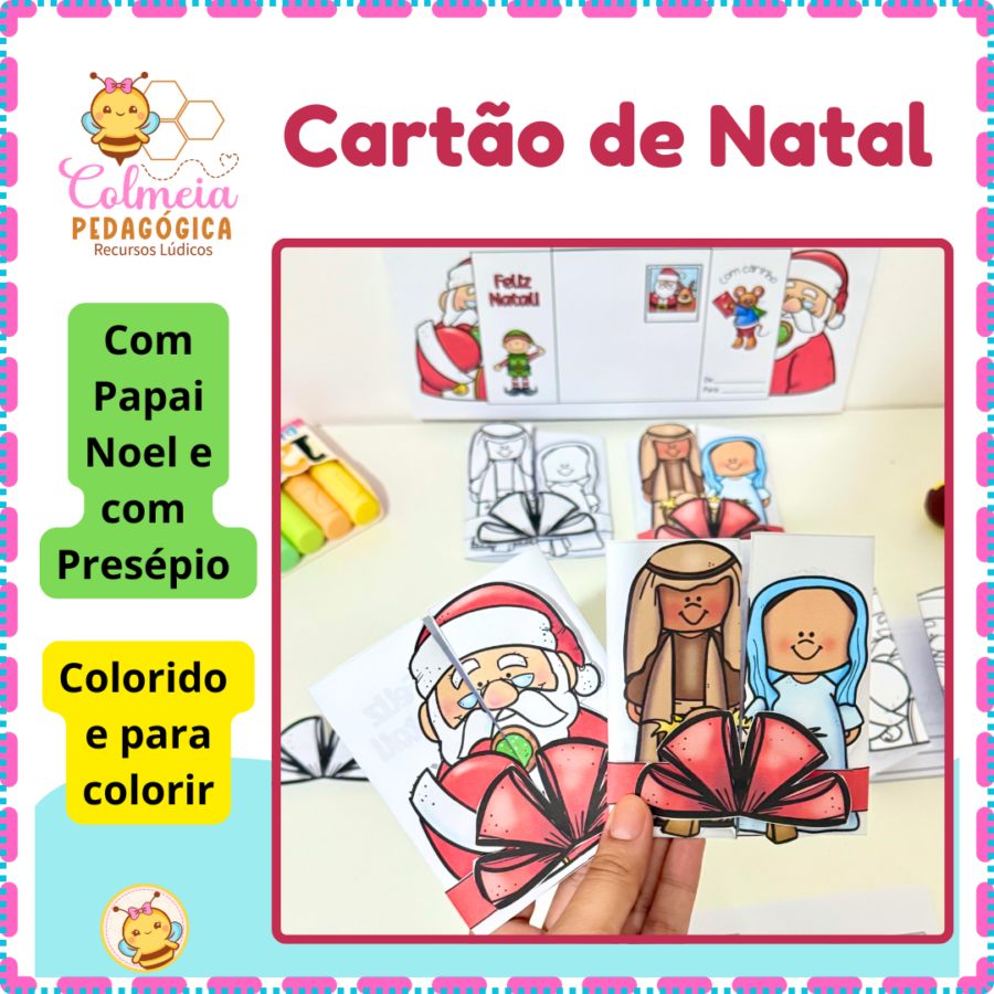 Cartão Papei Noel nas versões: Com linha, com espaço para desenho e com