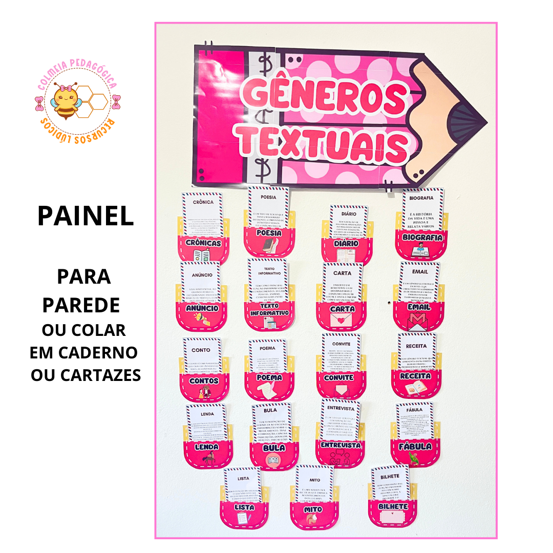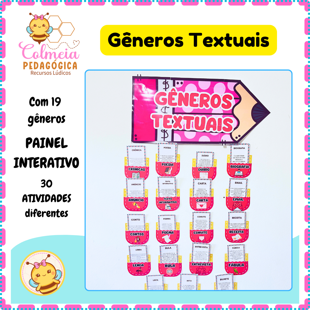 📚 Apresento o Painel Interativo de Gêneros Textuais, um recurso completo para trabalhar 19 gêneros diferentes de forma prática, lúdica e organizada.