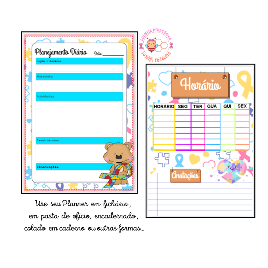 OBS. Este planner é como os demais, é apenas o tema Autismo , não tem recurso técnico.