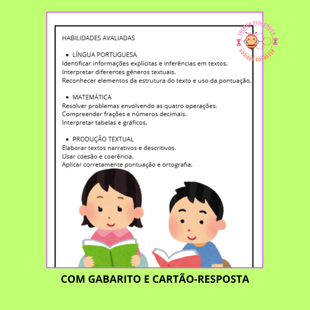 ✅ Questões de Língua Portuguesa e Matemática, baseadas nas habilidades exigidas;