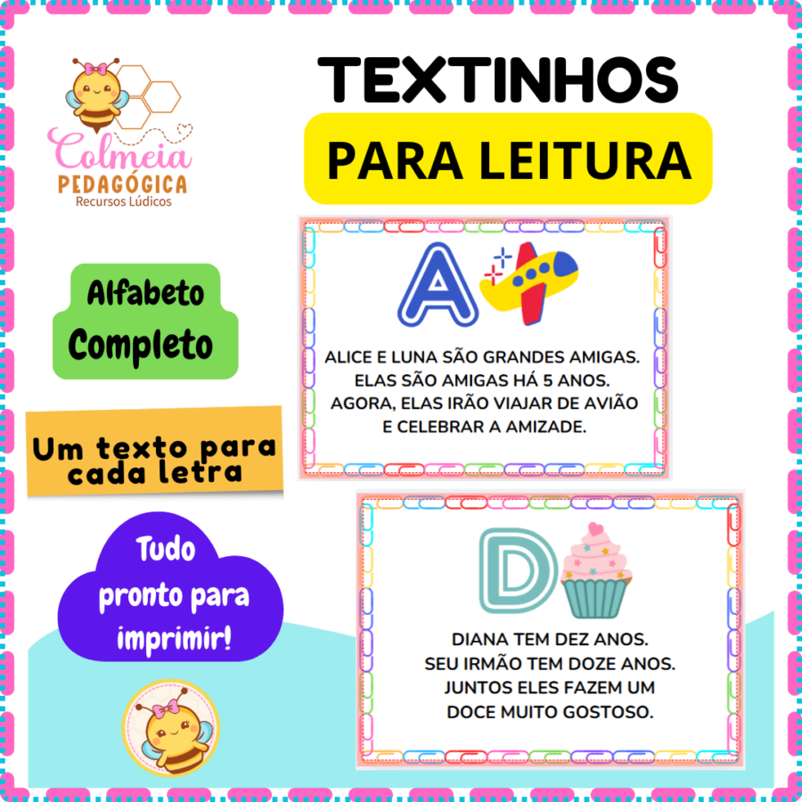 As Fichas de Textos Simples em Letra Bastão foram criadas para apoiar professores, pedagogos e psicopedagogos no desenvolvimento da leitura inicial, de forma clara, organizada e significativa.