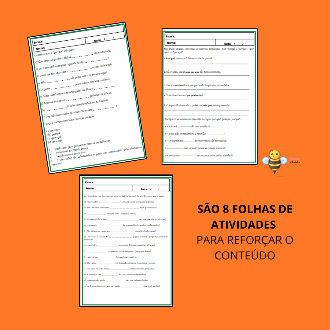 ✅ 8 Folhas com Atividades projetadas para aprofundar o entendimento